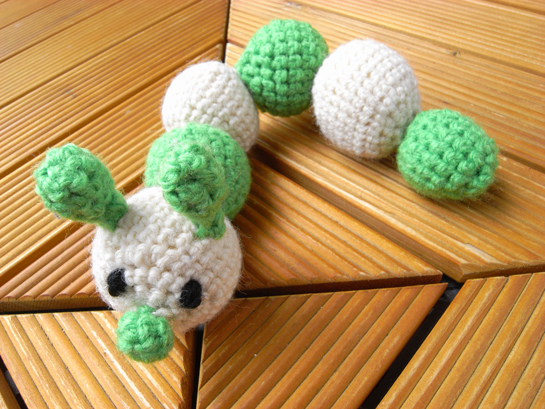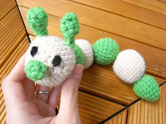 編みぐるみの仲間がふえました。はらぺこあお虫を思い出し作りました。この子もガラガラ仕様で振ると鳴りま...