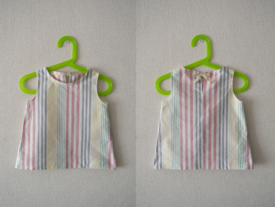 フリマで100円だった、大きめの台形スカートを我が子のワンピースに。涼しげで爽やかさん。1歳のお誕生...