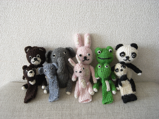 以前作った、くまとパンダの吉田さん町田さんコンビに仲間が増えました。指人形と同じメンツにしました。ル...