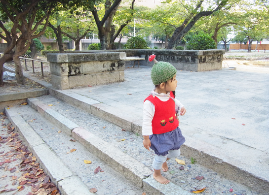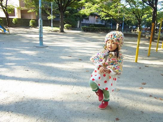 今日は、レッグウォーマーもしてみました。毛糸の子。春先に作ったワンピースの丈がだいぶ短くなり成長した...