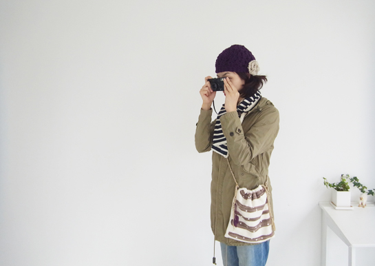 写真家の彼女。帽子、マフラー、かばんはみしんの子。今日は先日同様、作例のモデルの続きでFLAT-FI...