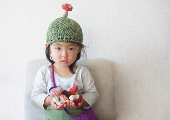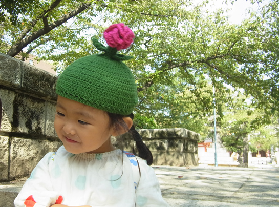 あたまにお花の咲く帽子。以前作った茄子帽子の親戚です。編み終えて思い出しました。数年前描いた花の子 ...