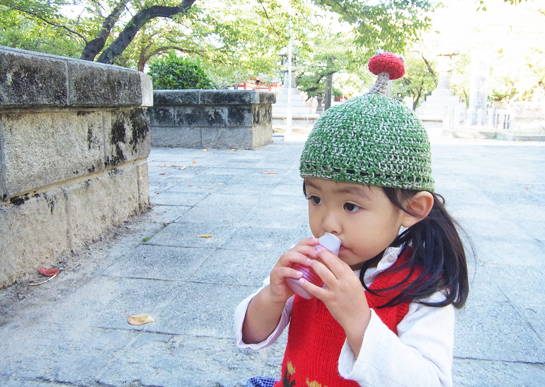 あたまにお花が咲いたなら、次はきのこがにょきにょき出てきました。秋ですから。ころんとしたきのこ。もし...