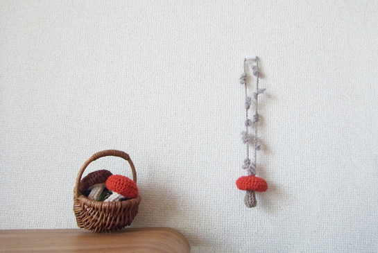 きのこのおすそ分けしたお友達から、子供のネックレスにしたいということでお家にあった毛糸をつけてあげま...