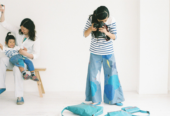 こちら、写真家の彼女から発注頂きました、肩掛けかばんと息子君用パンツ。とてもモダンなこの生地はSOU...
