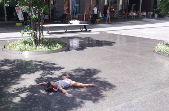 レゴ展を出ると目の前には魅力的な水辺。。(1cmほど水が湧き出ている場所)そう、素通りなどできるはず...