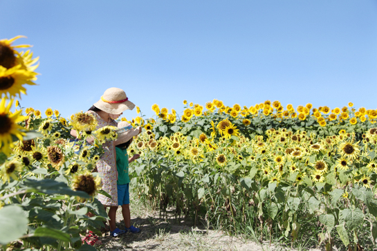 春に来たときには菜の花満開だった場所には太陽を真っすぐ向いた向日葵たち。近くに住む小学生のお姉ちゃん...