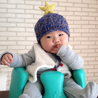 もっちりホッペの可愛い子。グレーのきのこ帽子は2代目。とても似合ってる!かわいくかぶってくれてありが...